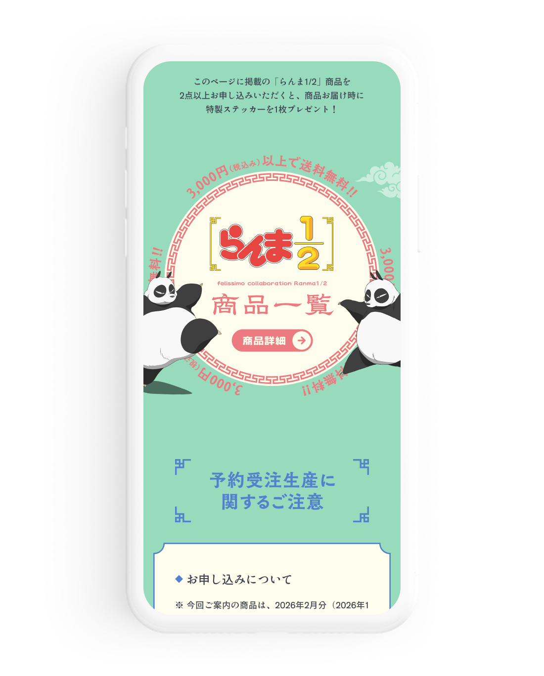 「らんま1/2 × フェリシモ」のコラボグッズサイトを制作しました。