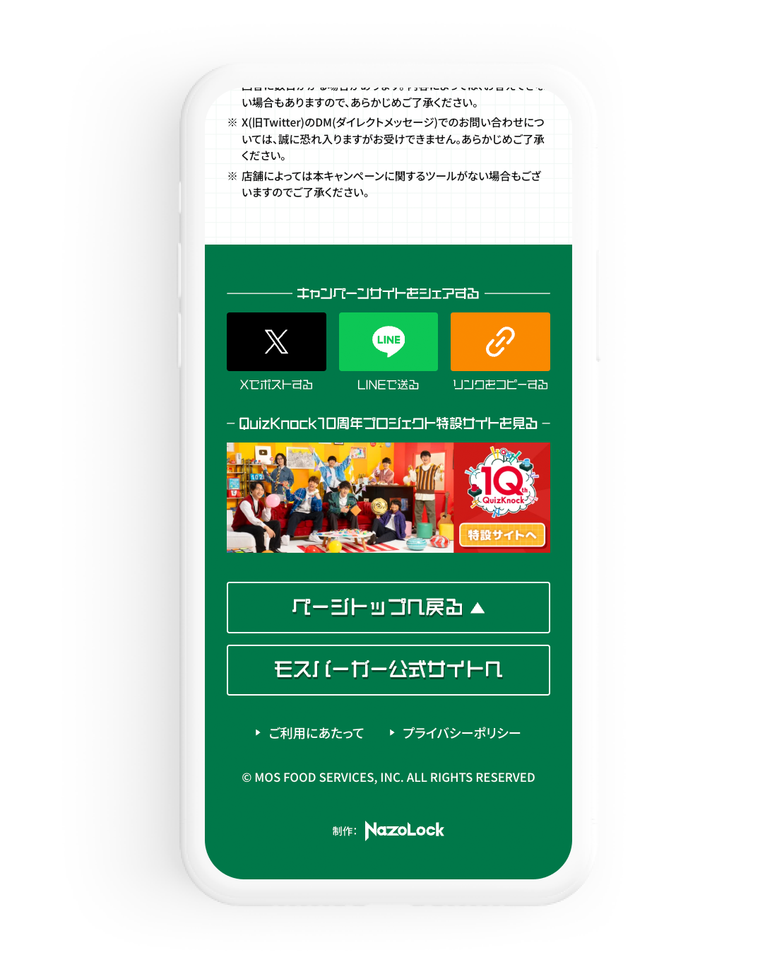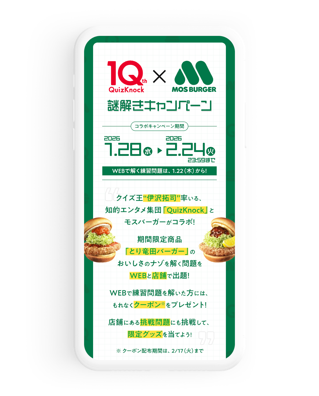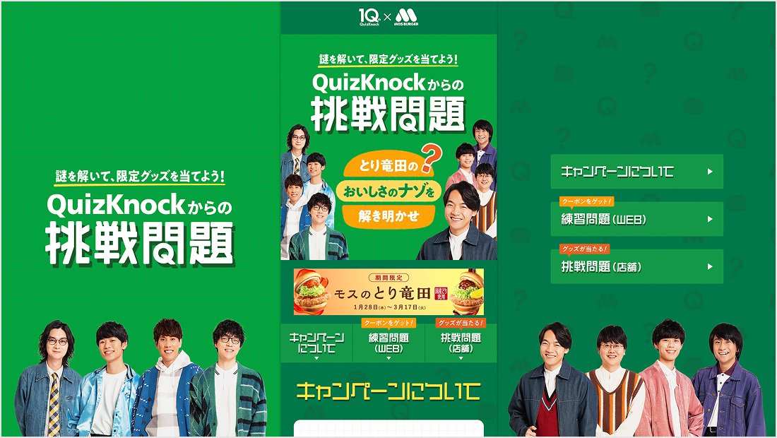 株式会社モスフードサービスとQuizKnockによる、コラボキャンペーンサイトの制作を担当しました。