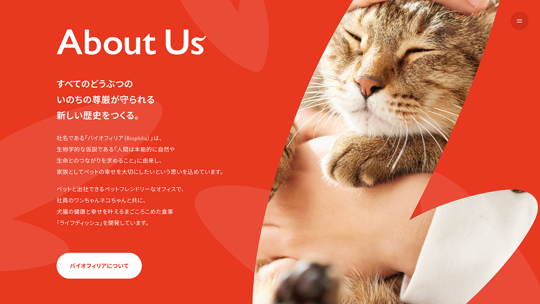フレッシュペットフードを提供する、ペットウェルビーイング企業「バイオフィリア」のコーポレートサイトを制作しました。