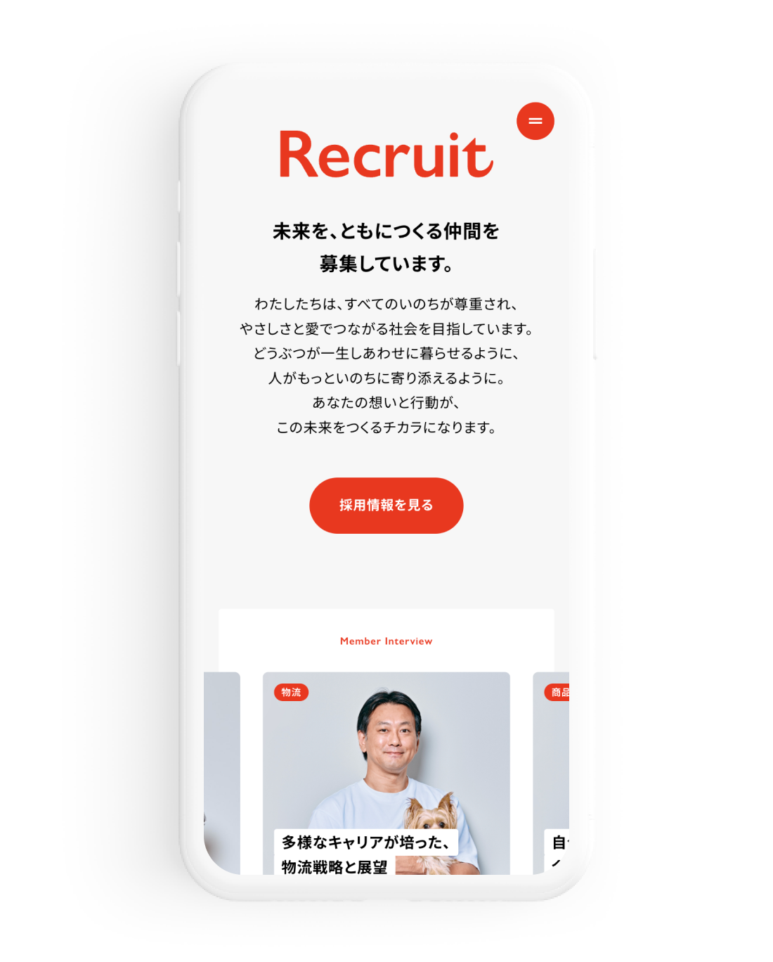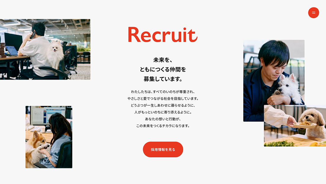 「ともに、しあわせになろう。」をビジョンに掲げ、「すべてのどうぶつのいのちの尊厳が守られる新しい歴史をつくる。」というミッションのもと、企業ロゴを刷新されたタイミングで、コーポレートサイトをリニューアルしました。求職者や事業関係者に対して、企業の価値観や社会における存在意義をより明確に伝えることを目的としています。