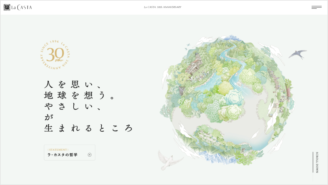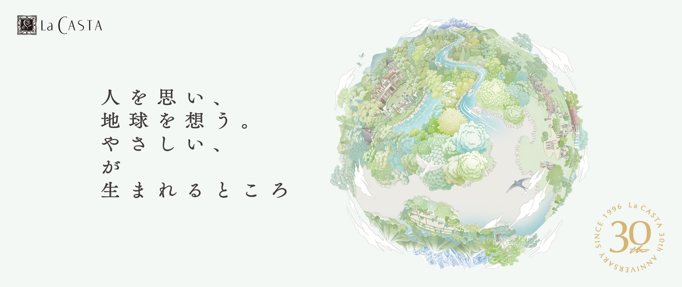 「植物の生命力と癒し」をコンセプトにした、国産ナチュラル化粧品ブランド「ラ・カスタ」のブランド誕生30周年のクリエイティブブランディングを担当しました。